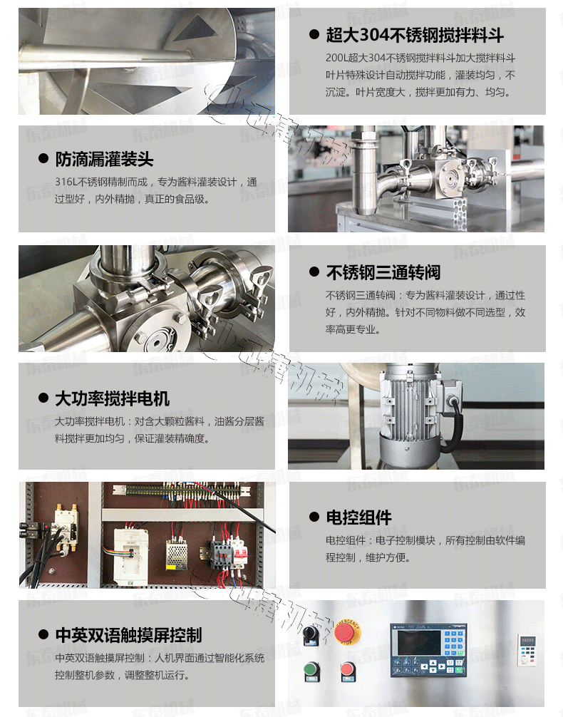 2、 醬料灌裝機設備全不銹鋼制作,衛(wèi)生、安全;