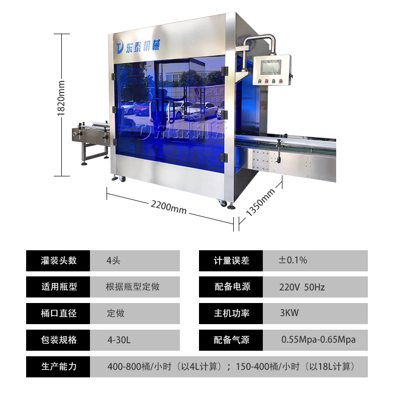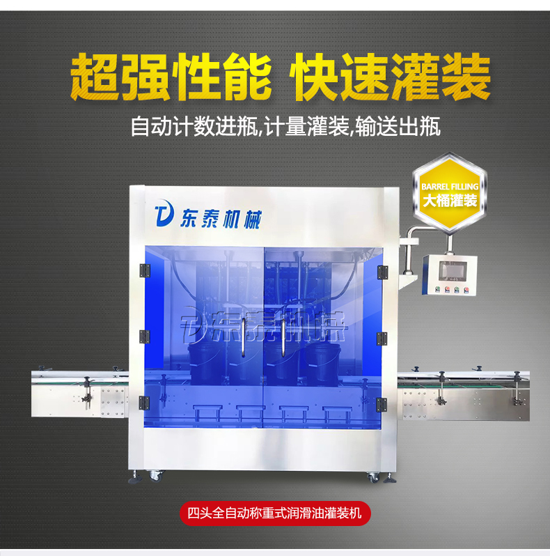 機(jī)油灌裝機(jī)適用于對(duì)4kg-25kg汽車用品類產(chǎn)品:潤(rùn)滑油、防凍液、車用尿素等液體灌裝。自動(dòng)完成計(jì)數(shù)進(jìn)瓶、計(jì)重量灌裝、輸送出瓶等一系列操作。 特別適用于潤(rùn)滑油、水劑、食用油的定量灌裝,是食品,醫(yī)藥,化妝品以及精細(xì)化工等行業(yè)的理想灌裝機(jī)。本機(jī)采用可編程控制器(PLC)、高速工控組態(tài)軟件進(jìn)行實(shí)時(shí)監(jiān)控的控制,使用調(diào)節(jié)方便。整機(jī)按GMP標(biāo)準(zhǔn)要求制作,各管路連接采用快裝方式,拆卸清洗方便,與物料接觸部位及外露部位均采用不銹鋼制造。整機(jī)安全、環(huán)保、安全、美觀、能適應(yīng)各種不同環(huán)境工作。