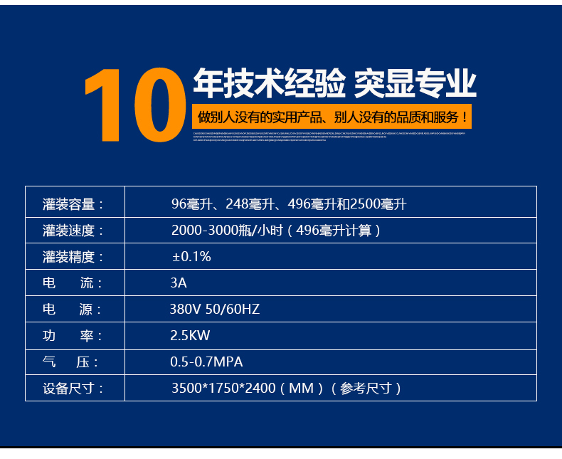 6.灌裝精度高,性能穩(wěn)定,操作及調(diào)整簡易快捷,品質(zhì)優(yōu)良卓越。